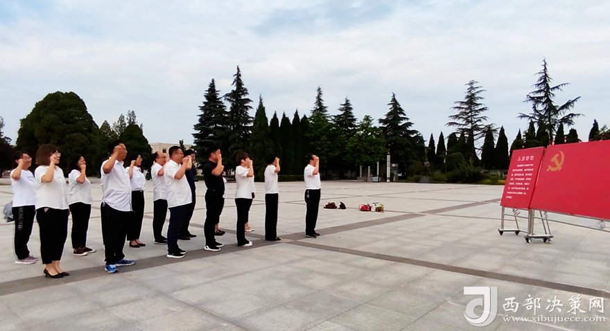 “我志愿加入中国共产党,拥护党的纲领,遵守党的章 程……”在扶眉战役烈士纪念碑英雄雕像下,全体党员手握右拳,面向党旗庄严宣誓,重温了入党誓词。坚定自己入党时的初心,传承英雄先烈们留下的革命意志。